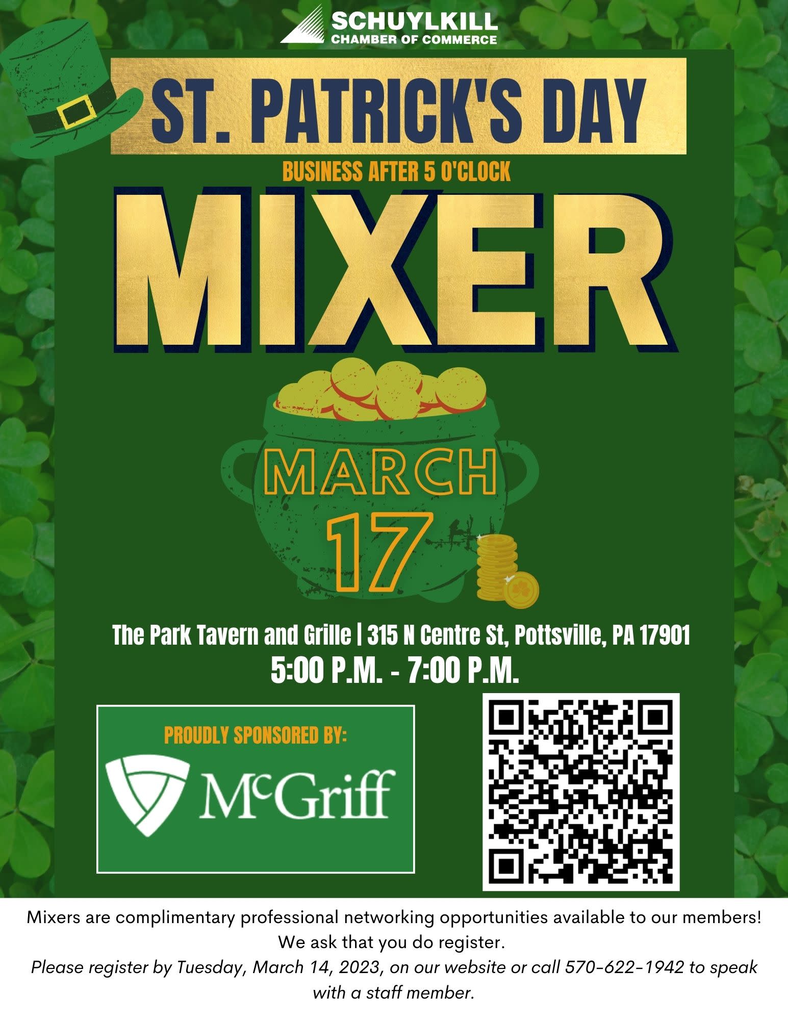 Our March 2023 St. Patrick's Day business networking mixer is proudly sponsored by McGriff.